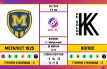 МЕТАЛІСТ 1925 (Харків) – КОЛОС (Ковалівка)28 вересня, початок о 15:00Житомир, Центральний стадіонАрбітр – Олександр Шандор (Львів)Трансляція – UPL.TV Обидві команди розпочали с...