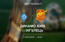 У Києві на стадіоні «Динамо» імені Валерія Лобановського о 18.00 розпочнеться чвертьфінальний поєдинок Кубку України, в якому «Динамо» прийматиме представника Першої ліги «Інгулець». Стали відо...