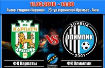 Прем'єр-ліга-2017/18. Матч 23-го туру «КАРПАТИ» (ЛЬВІВ) – «ОЛІМПІК» (ДОНЕЦЬК) 11 березня. Початок – 14:00. Львів. Стадіон «Україна» Арбітр – Микола Балакін (Київ)...