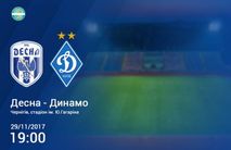 У середу, 29 листопада, київське «Динамо» в рамках чвертьфіналу розіграшу Кубка України сезону-2017/18 зіграє в Чернігові з місцевою «Десною». Матч відбудеться на стадіоні імені Юрія Гагаріна, ...