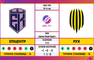 Обидві команди борються за те, щоб зберегти місце в УПЛ і в турнірній таблиці знаходяться по сусідству. «Епіцентр» посідає 14-те місце (17 очок), «Рух» – 13-те (19). Тож на нас чекає дуже принциповий поєдинок приблизно рівних суперників. Хоча шанси господарів виглядають дещо кращими. Все ж таки команда Сергія Нагорняка перебуває на моральному підйомі після перемоги над Колосом. Ще й Владислава Супрягу нарешті прорвало...